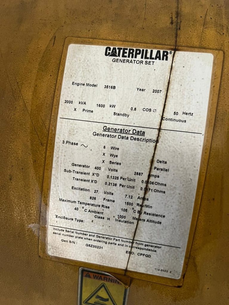 CAT DIESEL GENERATOR 3516B, 3512B 1600KW, 1200KW