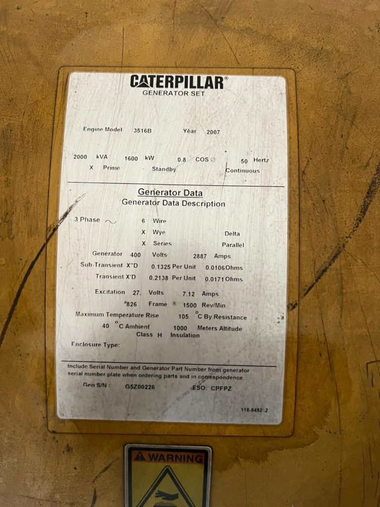 3516B 1600KW 2007, 9211, 7657 HOURS. 2 UNITS